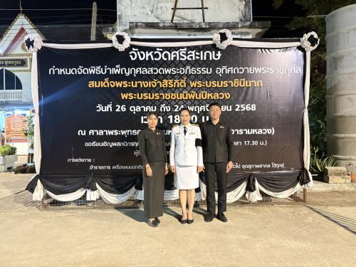 ด้วยจังหวัดศรีสะเกษได้จัดพิธีบำเพ็ญกุศลเพื่ออุทิศถวายพระราชกุศลสมเด็จพระนางเจ้าสิริกิติ์พระบรมราชินีนาถ พระบรมบรมราชชนนีพันปีหลวง ตั้งตั้งแต่วันที่ 26 ตุลาคม - 24 พฤศจิกายน 2568 ณ วัดมหาพุทธาราม ตำบลเมืองเหนือ อำเภอเมืองศรีสะเกษ