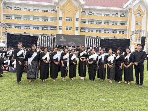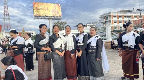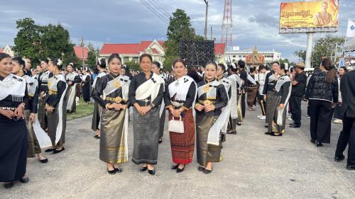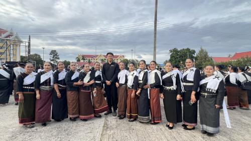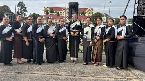 นางสาวอำภา ทุมหนู พัฒนาการอำเภอเมืองศรีสะเกษ พร้อมเจ้าหน้าที่ ร่วมให้กำลังใจตัวแทนเครือข่ายสตรี อำเภอเมืองศรีสะเกษ ที่เข้าร่วมเป็นนางรำ เพื่อถวายเป็นพระราชกุศลแด่ สมเด็จพระนางเจ้าสิริกิติ์ พระบรมราชินีนาถพันปีหลวง ในงานเฉลิมฉลอง 243 ปี จังหวัดศรีสะเกษ ณ ลานหน้าศาลากลางจังหวัดศรีสะเกษ