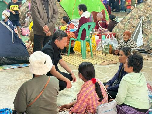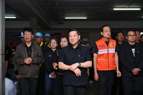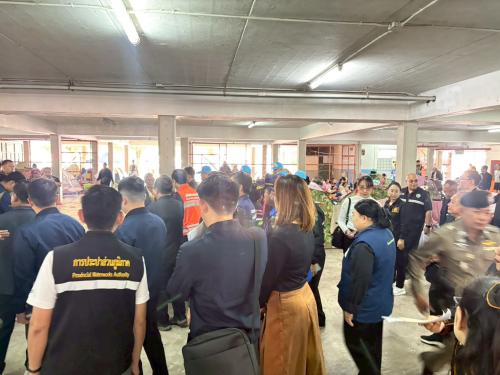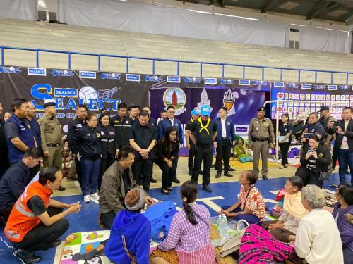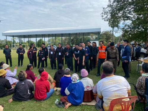 โอกาสนี้ ปลัดกระทรวงมหาดไทย ได้เดินทางตรวจเยี่ยมศูนย์พักพิงจุดต่าง ๆ ในพื้นที่จังหวัดศรีสะเกษ พร้อมเชิญสิ่งของพระราชทานของมูลนิธิราชประชานุเคราะห์มอบให้แก่ผู้ประสบภัย และมอบถุงยังชีพของกรมป้องกันและบรรเทาสาธารณภัยให้ผู้ว่าราชการจังหวัดศรีสะเกษและนายกองค์การบริหารส่วนจังหวัดศรีสะเกษได้แจกจ่ายให้กับประชาชนให้เพียงพอและทั่วถึง ซึ่งผู้ว่าราชการจังหวัดศรีสะเกษและนายกองค์การบริหารส่วนจังหวัดศรีสะเกษได้บูรณาการทุกภาคส่วนบริหารจัดการให้ประชาชนใช้ชีวิตอย่างเป็นปกติสุขภายในศูนย์พักพิงอย่างมีความสุขในทุกมิติ เช่น การประกอบอาหารเลี้ยงภายในศูนย์พักพิง การแจกจ่ายอาหารตามวงรอบ หน่วยบริการสาธารณสุขที่มีแพทย์ พยาบาล เภสัชกร ประจำตลอด 24 ชั่วโมง รวมถึงศูนย์ พม. ใกล้คุณ ดูแลคุณภาพชีวิตประชาชนกลุ่มเปราะบางประจำศูนย์พักพิง ทั้งมีการฝึกอาชีพ การฝึกบินอากาศยานไร้คนขับ การฝึกการจัดทำบัญชีรายรับรายจ่ายครัวเรือน เป็นต้น โดยมีประชาชนในศูนย์พักพิง จุดที่ 1 จำนวน 2,247 คน และจุดที่ 2 จำนวน 955 คน ซึ่งในจำนวนดังกล่าวมีประชาชนกลุ่มเปราะบาง ทั้งเด็ก ผู้ด้อยโอกาส คนพิการ ผู้สูงอายุ และผู้ป่วยติดเตียง ที่มีเจ้าหน้าที่ดูแลตลอด 24 ชั่วโมง และสำหรับเมนูอาหารในวันนี้ อาทิ ข้าวผัด สำหรับเด็ก หมูหวาน หมูผัดกะหล่ำ ไข่เจียว หมูผัดแตงกวา โดยมีรถประกอบอาหารของกรมป้องกันและบรรเทาสาธารณภัย และรถโรงครัวสนามของสำนักงานตำรวจแห่งชาติ พร้อมอุปกรณ์และวัตถุดิบจากองค์การบริหารส่วนจังหวัดศรีสะเกษ ประกอบเลี้ยงประชาชน รวมถึงจิตอาสาและเจ้าหน้าที่ผู้ปฏิบัติงานในทุกวัน