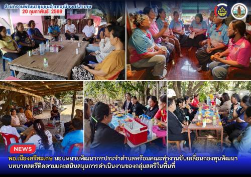 พอ.เมืองศรีสะเกษ มอบหมายพัฒนากรประจำตำบลพร้อมคณะทำงานขับเคลื่อนกองทุนพัฒนาบทบาทสตรีติดตามและสนับสนุนการดำเนินงานของกลุ่มสตรีในพื้นที่