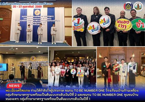 ระหว่างวันที่ 25 – 27 กุมภาพันธ์ 2569 อำเภอเมืองศรีสะเกษ ส่งตัวแทนอำเภอและชมรม TO BE NUMBER ONE เข้าร่วมแสดงผลงานในระดับภูมิภาค เพื่อมุ่งสู่การรักษามาตรฐานและเป็นต้นแบบระดับเงินอย่างยั่งยืน ในการประกวดครั้งนี้ มีหน่วยงานในสังกัดอำเภอเมืองศรีสะเกษที่ผ่านเกณฑ์เข้าร่วมนำเสนอผลงานจำนวน 3 กลุ่ม ดังนี้: