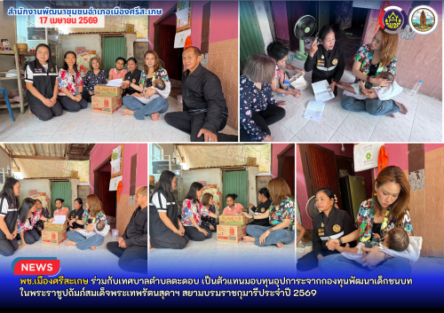 พช.เมืองศรีสะเกษ ร่วมกับเทศบาลตำบลตะดอบ เป็นตัวแทนมอบทุนอุปการะจากกองทุนพัฒนาเด็กชนบทในพระราชูปถัมภ์สมเด็จพระเทพรัตนสุดาฯ สยามบรมราชกุมารีประจำปี 2569
